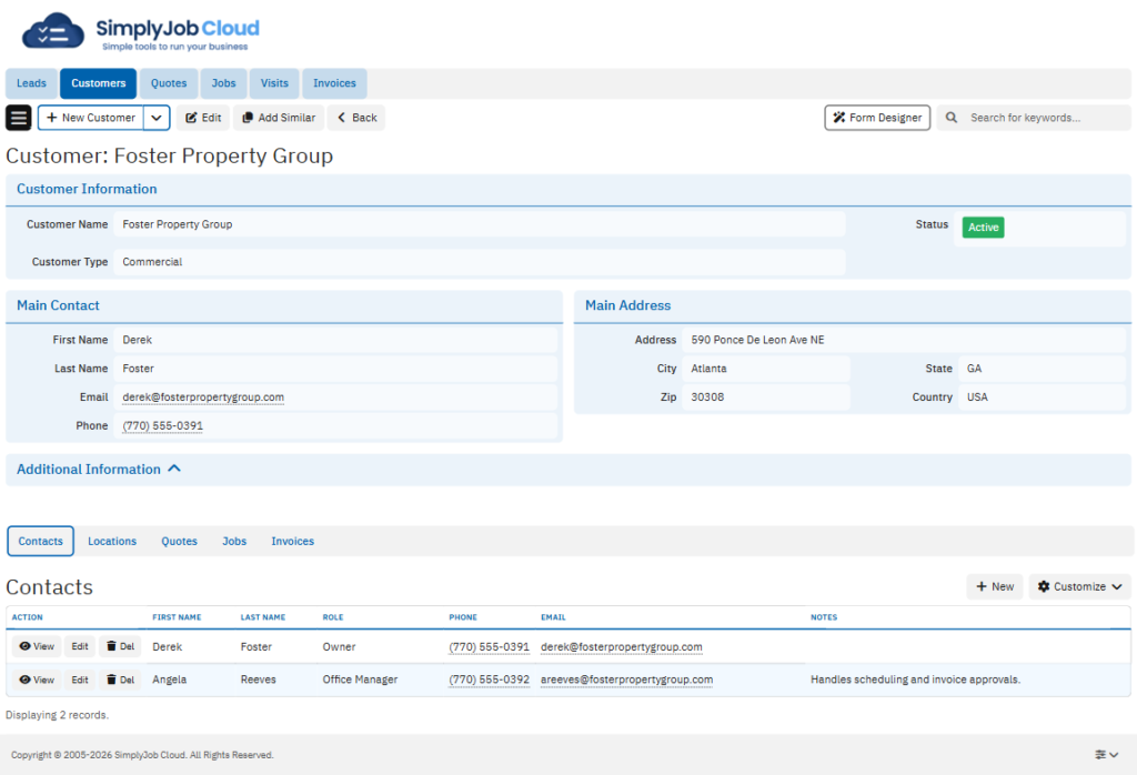 Every customer, contact, and location — organized and accessible. Full history from first call to last invoice.