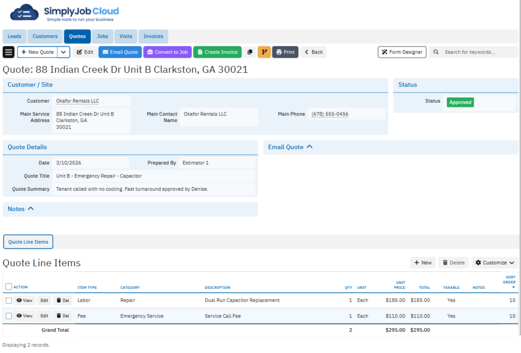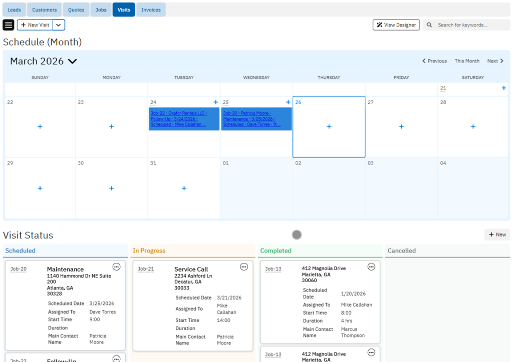 Build quotes, convert to jobs in one click, schedule visits, and track everything without chasing anyone.